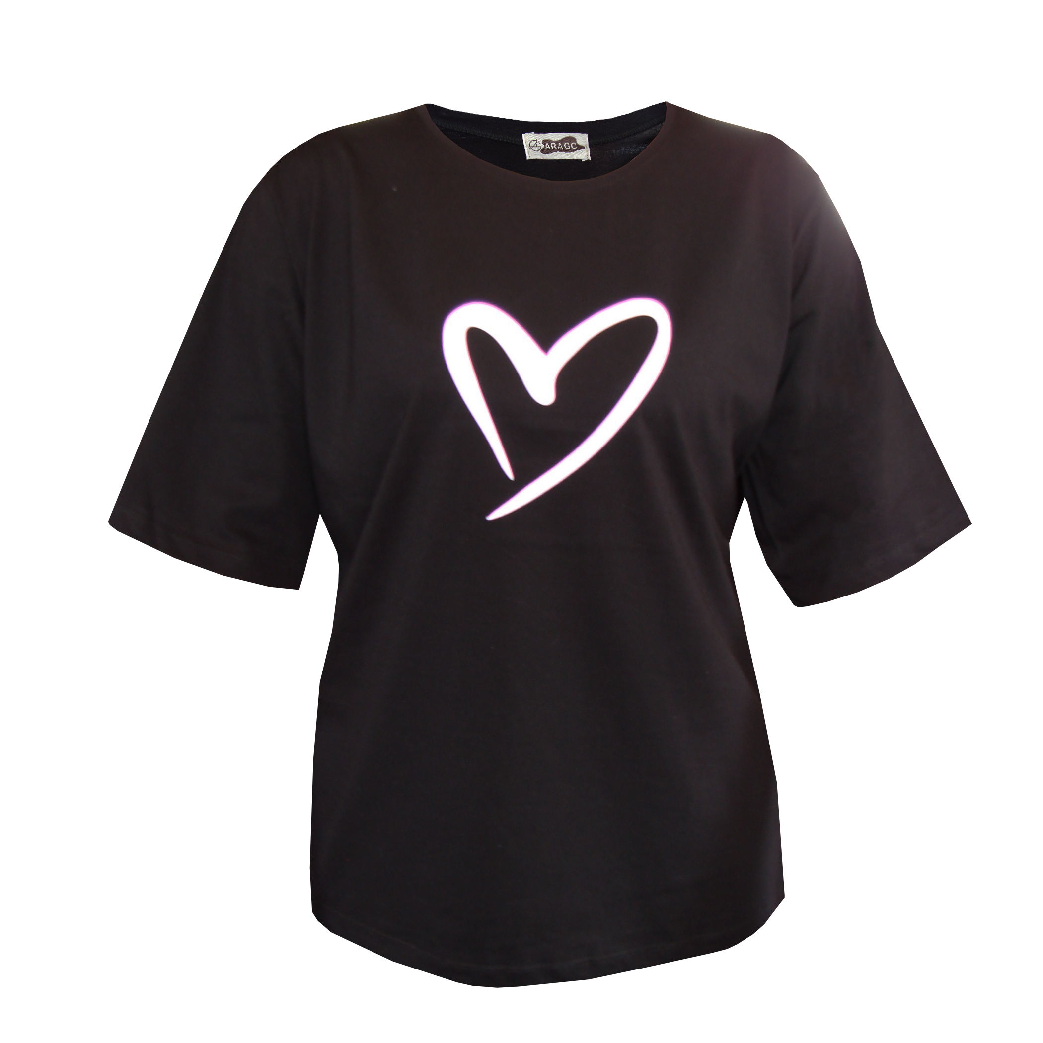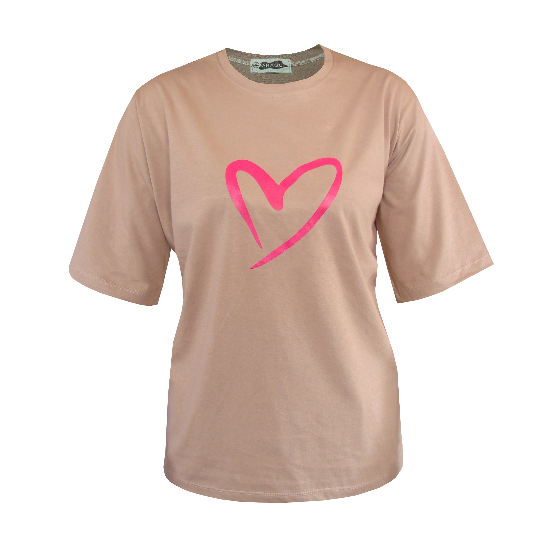تیشرت باکسی نخ پنبه زنانه چاپ قلب کد A1083