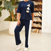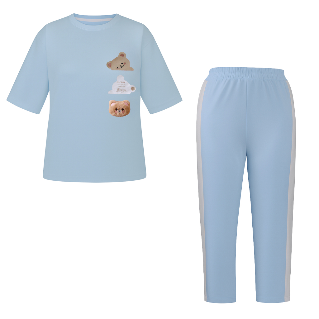 در طراحی این ست، جزئیات فانتزی و دلنشینی مانند طرحهای عروسکی بر روی تیشرت دیده میشود که جلوهای بانمک و خاص به لباس بخشیده است. شلوار این ست نیز دارای برش آزاد و راحت با نوار سفید در کنارههاست که علاوه بر زیبایی، باعث میشود فرم بدن متعادلتر دیده شود. استفاده از رنگهای متنوع و شاد مانند گلبهی، کالباسی، زرد لیمویی، سرمهای، سبز پاستیلی و آبی روشن باعث شده تا هر سلیقهای بتواند رنگ دلخواه خود را انتخاب کند و استایل خاص خود را بسازد.