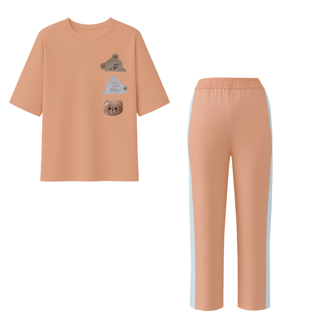 ست تیشرت شلوار طرح خرس برجسته کد A1093-98